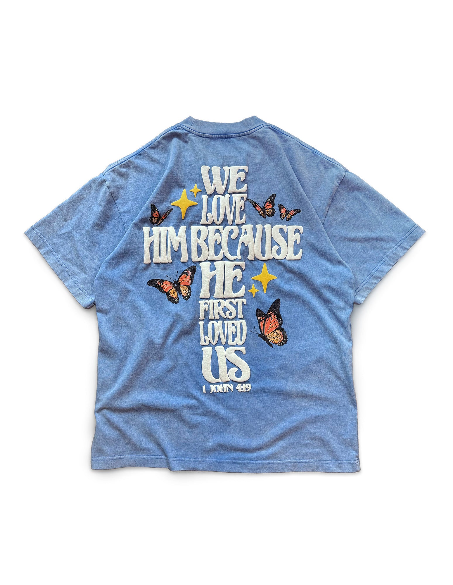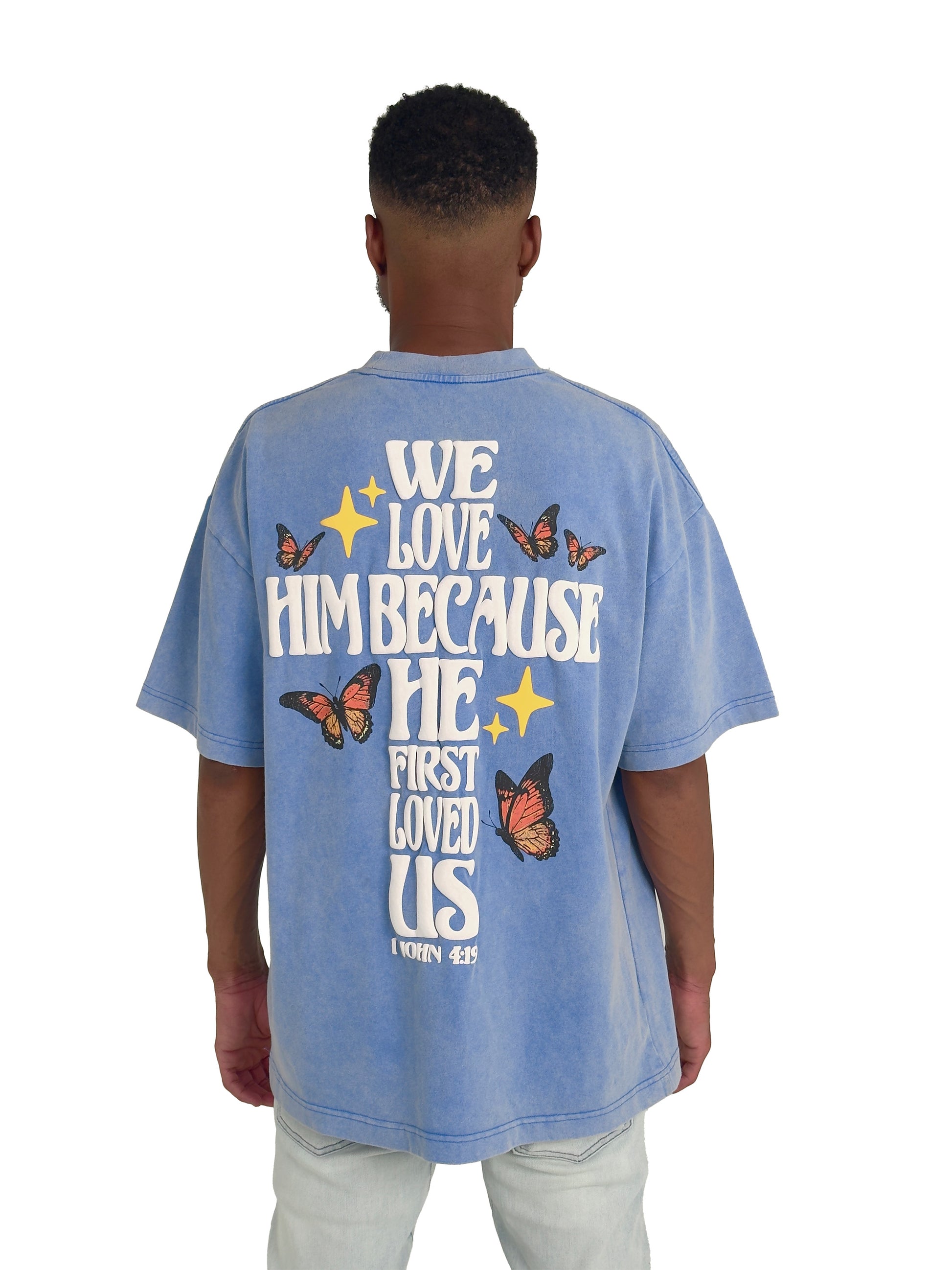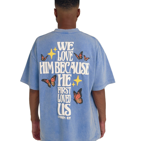 (Pre-Order 6 Weeks) "He Loved Us" - Unisex oversized t-shirt in heavyweight 250gsm acid wash